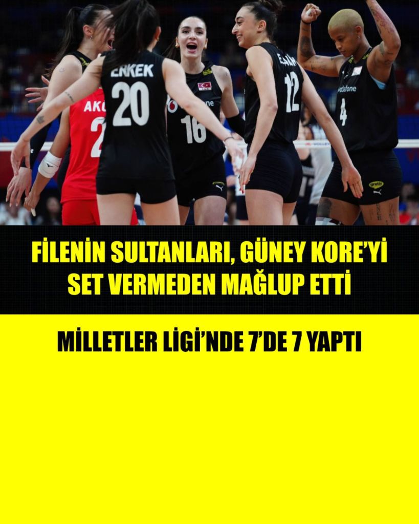 A Milli Kadın Voleybol Takımı, nam-ı diğer ‘Filenin Sultanları’, İstanbul’un ev sahipliğinde düzenlenen 2025 FIVB Voleybol Milletler Ligi ikinci haftasındaki üçüncü maçında maçında Güney Kore’yi 3-0 yendi.