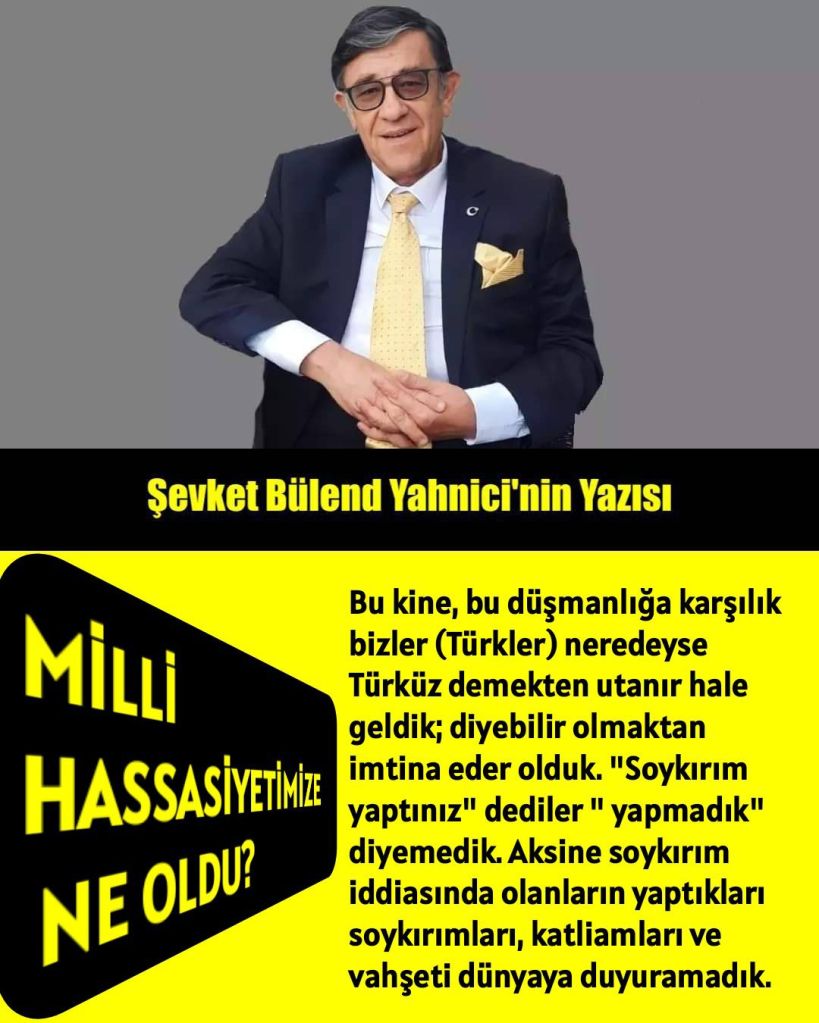 Bu kine, bu düşmanlığa karşılık bizler (Türkler) neredeyse Türküz demekten utanır hale geldik; diyebilir olmaktan imtina eder olduk. “Soykırım yaptınız” dediler ” yapmadık” diyemedik. Aksine soykırım iddiasında olanların yaptıkları soykırımları, katliamları ve vahşeti dünyaya duyuramadık. “Türkiye Türklerindir” demekten “vazgeçin, ayıp oluyor ” dediler “vazgeçmeyiz” deyip ısrar edemedik, utandık, TC’leri kaldırırlarken sesimiz çıkmadı. Andımız’ı kaldırdılar, Türk çocuklarına Türküm demeyi yasakladılar, ellerimiz böğrümüzde bütün olan biteni seyrettik.
