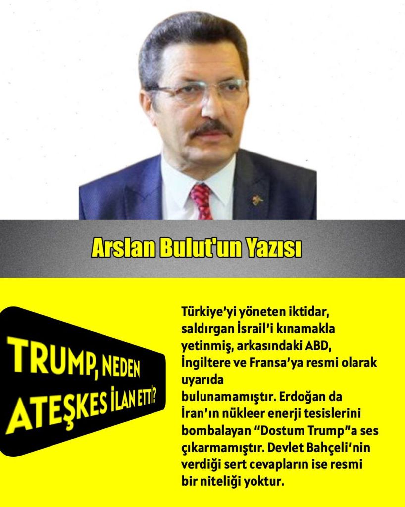 Türkiye’yi yöneten iktidar, saldırgan İsrail’i kınamakla yetinmiş, arkasındaki ABD, İngiltere ve Fransa’ya resmi olarak uyarıda bulunamamıştır. Erdoğan da İran’ın nükleer enerji tesislerini bombalayan “Dostum Trump”a ses çıkarmamıştır. Devlet Bahçeli’nin verdiği sert cevapların ise resmi bir niteliği yoktur.
