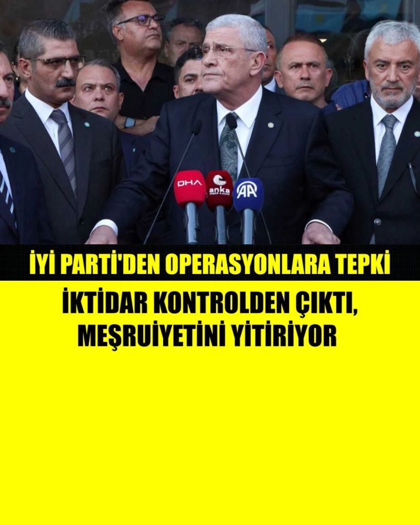 Belediye başkanlarına yönelik operasyonlara İYİ Parti’den de tepki geldi. Buğra Kavuncu, “Sopa atmaya yarayan kurumlardan başka tutunacakları bir şey kalmadı” dedi. Genel Başkan Dervişoğlu ise tepkisini kısa ve sert bir ifadeyle dile getirdi