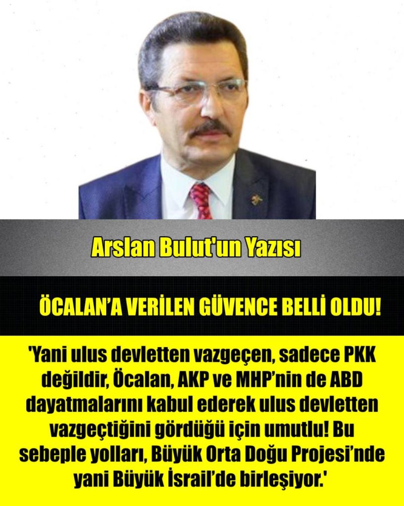 Yani ulus devletten vazgeçen, sadece PKK değildir, Öcalan, AKP ve MHP’nin de ABD dayatmalarını kabul ederek ulus devletten vazgeçtiğini gördüğü için umutlu! Bu sebeple yolları, Büyük Orta Doğu Projesi’nde yani Büyük İsrail’de birleşiyor…