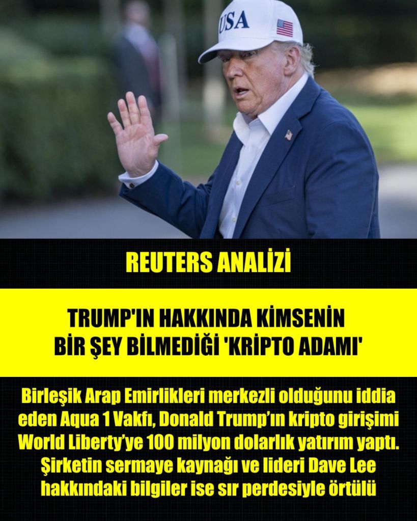 Birleşik Arap Emirlikleri merkezli olduğunu iddia eden Aqua 1 Vakfı, Donald Trump’ın kripto girişimi World Liberty’ye 100 milyon dolarlık yatırım yaptı. Şirketin sermaye kaynağı ve lideri Dave Lee hakkındaki bilgiler ise sır perdesiyle örtülü