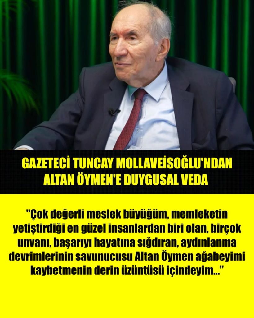 Türkiye basınının duayen isimlerinden Altan Öymen’in vefatı, gazeteci Tuncay Mollaveisoğlu tarafından büyük bir üzüntüyle karşılandı. Mollaveisoğlu, sosyal medya hesabından yaptığı paylaşımda, Öymen’in hayatını kaybetmesinin ardından duygularını şu sözlerle ifade etti: