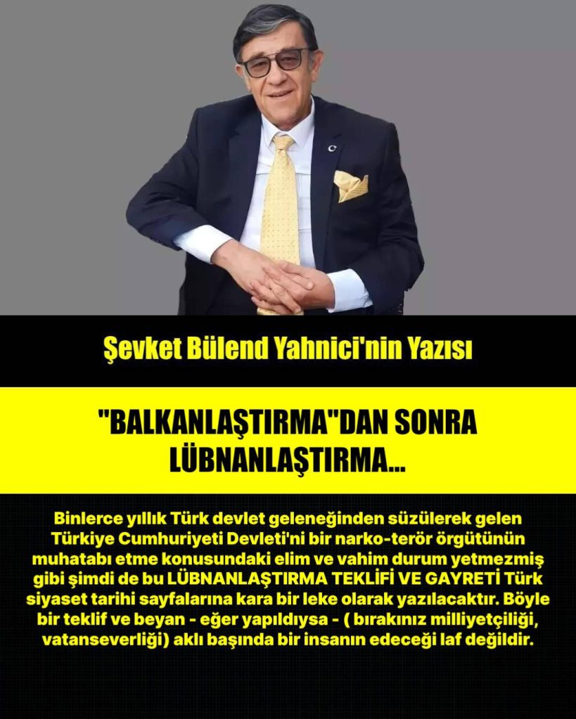 Binlerce yıllık Türk devlet geleneğinden süzülerek gelen Türkiye Cumhuriyeti Devleti’ni bir narko-terör örgütünün muhatabı etme konusundaki elim ve vahim durum yetmezmiş gibi şimdi de bu LÜBNANLAŞTIRMA TEKLİFİ VE GAYRETİ Türk siyaset tarihi sayfalarına kara bir leke olarak yazılacaktır. Böyle bir teklif ve beyan – eğer yapıldıysa – ( bırakınız milliyetçiliği, vatanseverliği) aklı başında bir insanın edeceği laf değildir.