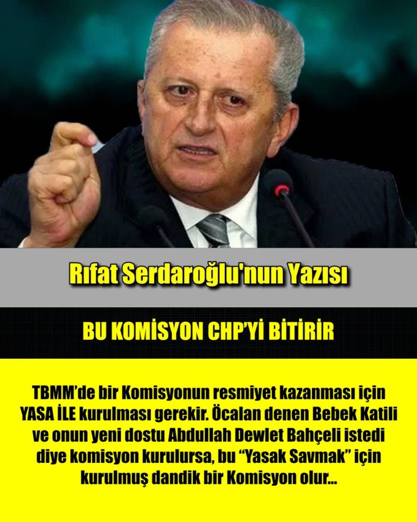 TBMM’de bir Komisyonun resmiyet kazanması için YASA İLE kurulması gerekir. Öcalan denen Bebek Katili ve onun yeni dostu Abdullah Dewlet Bahçeli istedi diye komisyon kurulursa, bu “Yasak Savmak” için kurulmuş dandik bir Komisyon olur…