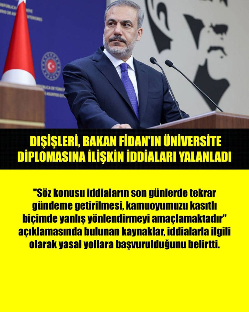 Dışişleri Bakanlığı kaynakları, Dışişleri Bakanı Hakan Fidan’ın üniversite diplomasına ilişkin gündeme getirilen iddiaları yalanladı.