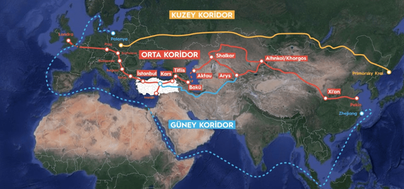 Şekil 2: Kuşak-Yol Projesi ve Zengezur Koridoru (Kaynak: Anadolu Ajansı)