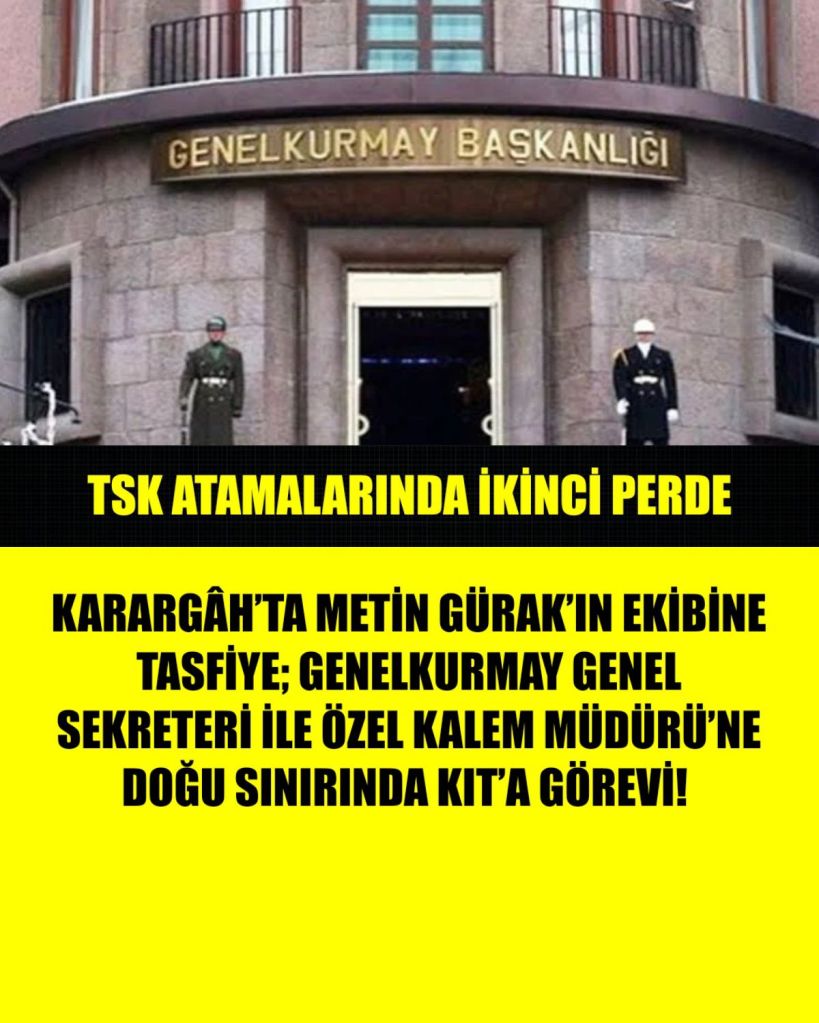KARARGÂH’TA METİN GÜRAK’IN EKİBİNE TASFİYE; GENELKURMAY GENEL SEKRETERİ İLE ÖZEL KALEM MÜDÜRÜ’NE DOĞU SINIRINDA KIT’A GÖREVİ!