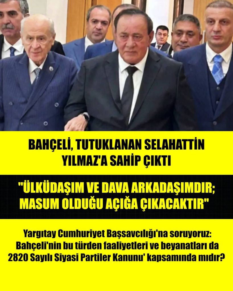 Kapak resminde gördüğünüz, Bahçeli’nin Organize suç dünyasının önde gelen isimlerinden Alaattin Çakıcı ile birlikte MHP Genel Başkanı Devlet Bahçeli’yi ziyaretiyle bilinen Selahattin Yılmaz