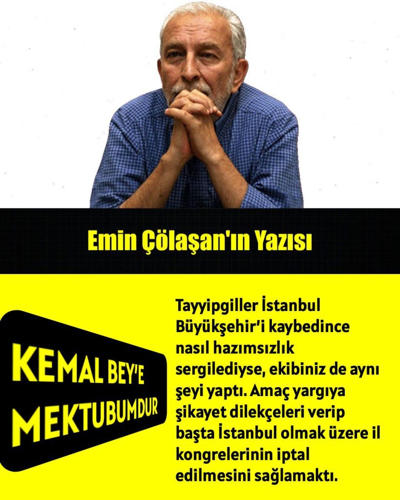 Tayyipgiller İstanbul Büyükşehir’i kaybedince nasıl hazımsızlık sergilediyse, ekibiniz de aynı şeyi yaptı. Amaç yargıya şikayet dilekçeleri verip başta İstanbul olmak üzere il kongrelerinin iptal edilmesini sağlamaktı.