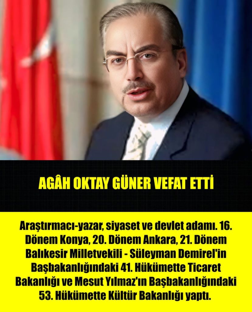 Agâh Oktay Güner’e rahmet; ailesine ve sevenlerine başsağlığı dileriz.
