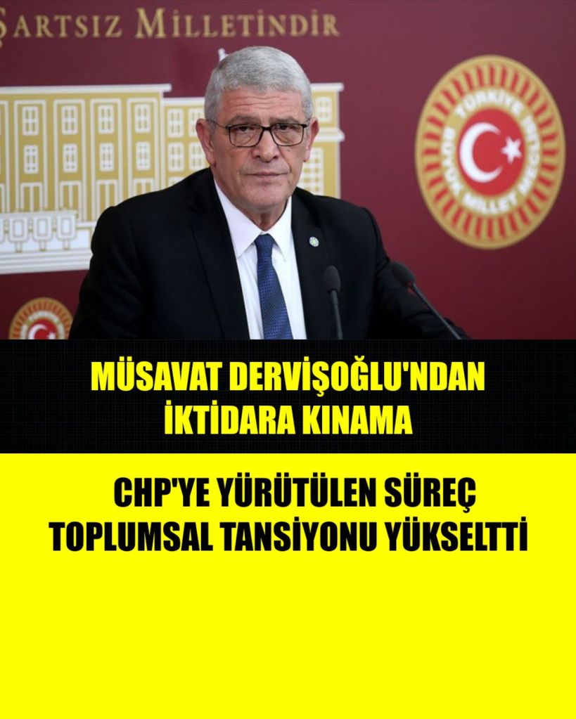 İYİ Parti Genel Başkanı Müsavat Dervişoğlu, CHP İstanbul İl Başkanlığı’nda yaşanan olaylara ilişkin olarak, “Demokrasiye olan tecavüzü, kaynağı kim olursa olsun şiddetle kınıyorum.