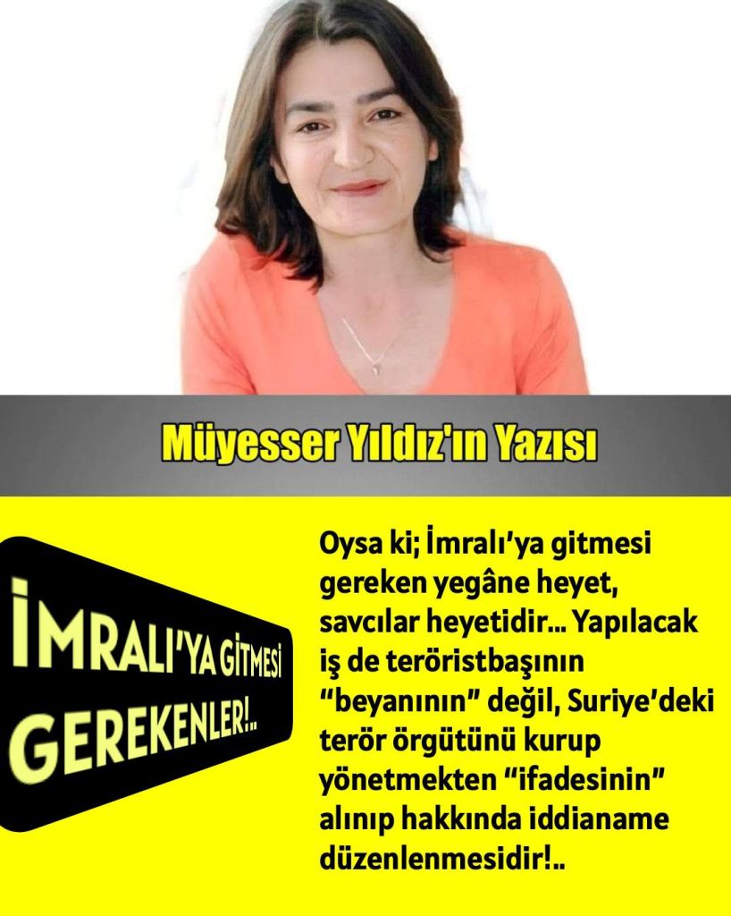 Oysa ki; İmralı’ya gitmesi gereken yegâne heyet, savcılar heyetidir… Yapılacak iş de teröristbaşının “beyanının” değil, Suriye’deki terör örgütünü kurup yönetmekten “ifadesinin” alınıp hakkında iddianame düzenlenmesidir!..
