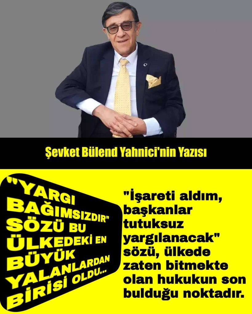Bu ülkede “yargıç bağımsızlığı” kalmış mıdır ki, yargı da bağımsız olsun. Savcıların, hakimlerin artık özgür olmadıkları/olamadıkları, soruşturma ve yargılamalarında tarafsız ve bağımsız, özgür iradeye dayalı hareket edemedikleri açıktır. “Tabii hakim” diye bir ilke kalmamıştır. (Habur’a çadır mahkemesi kuran ülkede tabii degil, gayritabii hakim kuralı var demektir. 15 Temmuz’un ertesinde binlerce savcıyı, hakimi adliyelerden, yarısından fazlasına yol vererekten de Yargitaydan tasfiye edilmedi mi?…Adliyeyi böyle insanlarla kim doldurmuştu?..Yargıtay’daki korkunç istila kimin eseriydi?..Bu meselenin bir yönü. Diğer yönü bunları oralara taşıyıp yerleştirenler meselesidir. Hadi bunlar ” örgütçü”, ya da ” örgüte iltisaklı”, peki bunları oralara getirenlere işlem yapıldı mı? Yapılmadığı da yargının durumunu anlatmada bir ölçü değil mi?.. Birileri yıllarca “DEM derhal kapatılsın” diye yırtındı. AYM belki de ağırdan aldı (?!) Şimdi şu an, şu gün bu konuyu görüştüm, “DEM’i kapattım” diyebilir mi? Sıkıysa desin…🤣 Gülüyoruz, ama işler hukuk adına içler acısıdır. Son yaşanan bir örnek durumun içler acılığının vahametinin tavan yapmış bir halidir. Bu ülkede yıllar boyu vekillik, bakanlık, parti liderliği, meclis başkanlığı yapmış bir devlet büyüğü iktidarın yandan komşusu, cumhurun yol arkadaşı bir parti başkanına gidiyor ve içerde yatmakta olan belediye yetkililerinin mahkemelerce serbest bırakılmaları için tavassutta bulunuyor …🤔 Görüşme sonrasında da ” bu konuda ümitliyim…” diye demeç veriyor…Vallahi hele bu olaydan sonra benim bu memleketin adam olacağına dair hiç ümidim kalmadı. Bu, hukukun bitişindeki son noktadır.