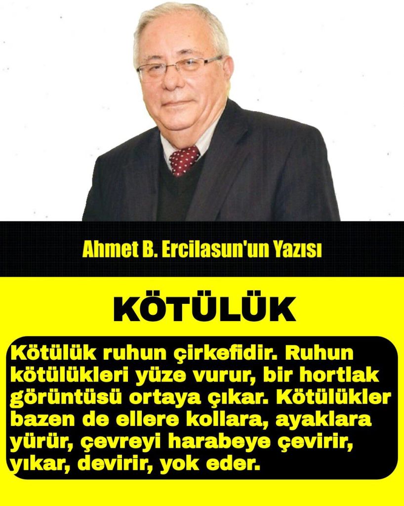 Kötülük ruhun pası, çirkefidir. Ruhun kötülükleri yüze vurur, bir hortlak görüntüsü ortaya çıkar. Kötülükler bazen de ellere kollara, ayaklara yürür, çevreyi harabeye çevirir, yıkar, devirir, yok eder.