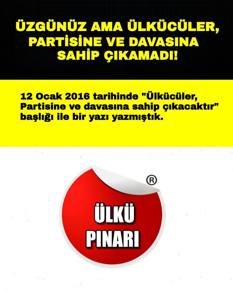 12 Ocak 2016 tarihinde “Ülkücüler, Partisine ve davasına sahip çıkacaktır” başlığı ile bir yazı yazmıştık…