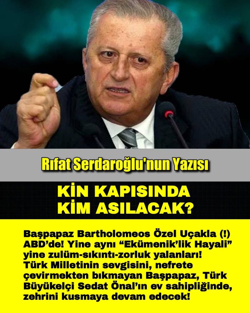 Tarihten ders almayan Başpapaza, Osmanlı’nın ihanetlerinden dolayı astığı üç Patrik’i hatırlatalım. CB Erdoğan, ABD ziyareti öncesi şu sözü hiç unutmamalıdır.
