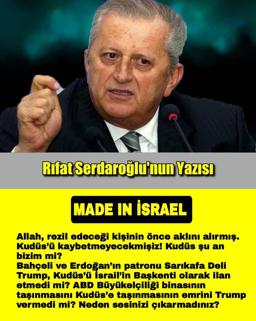Bahçeli ve Erdoğan’ın patronu Sarıkafa Deli Trump, Kudüs’ü İsrail’in Başkenti olarak ilan etmedi mi? ABD Büyükelçiliği binasının taşınmasını Kudüs’e taşınmasının emrini Trump vermedi mi? Neden sesinizi çıkarmadınız?