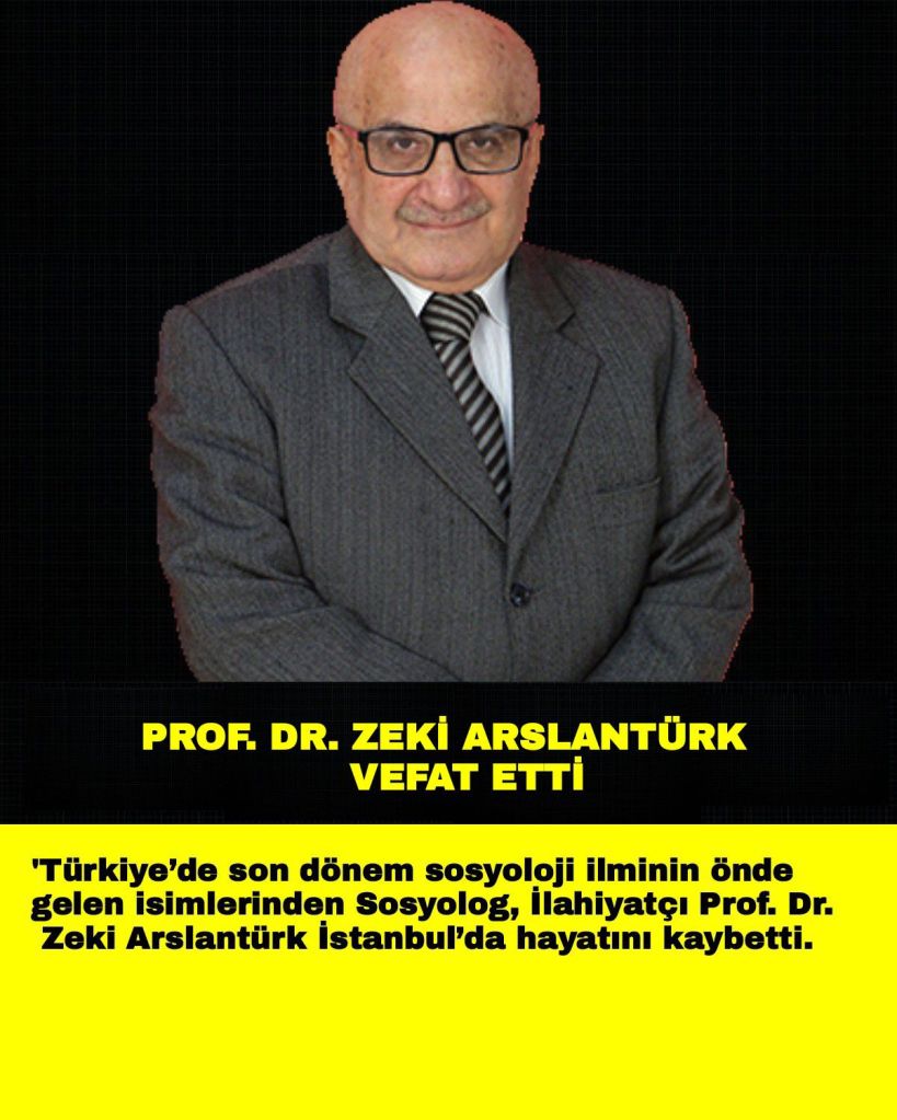 Türk milliyetçisi kıymetli bir bilim adamı ve sosyolog olan eski bir dostu Prof. Dr. Zeki Arslantürk’ü kaybettik. Allah rahmet eylesin. Ailesine, sevenlerine, bilim camiasına, dostlarına sabır ve başsağlığı diliyorum.