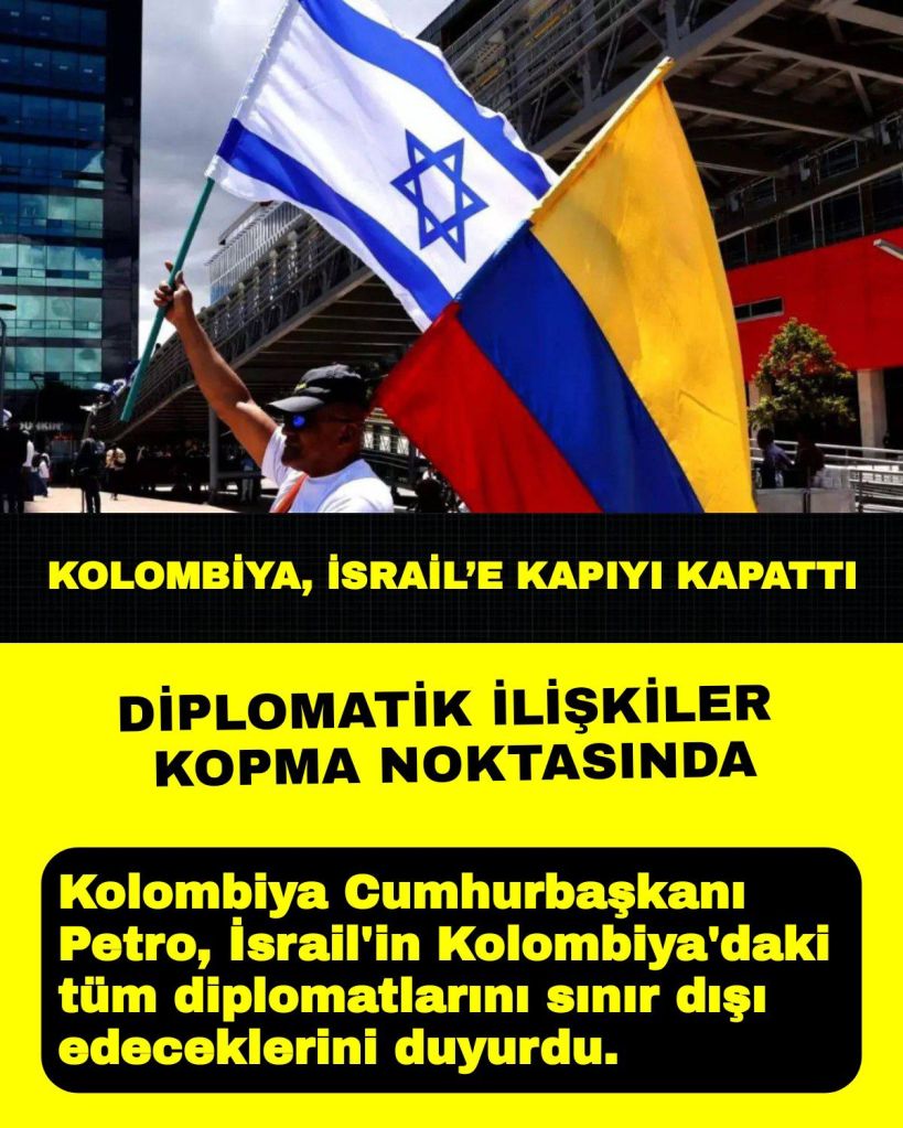 Kolombiya Cumhurbaşkanı Petro, İsrail’in Kolombiya’daki tüm diplomatlarını sınır dışı edeceklerini duyurdu.
