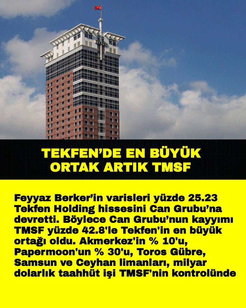Feyyaz Berker’in varisleri yüzde 25.23 Tekfen Holding hissesini Can Grubu’na devretti. Böylece Can Grubu’nun kayyımı TMSF yüzde 42.8’le Tekfen’in en büyük ortağı oldu. Akmerkez’in % 10’u, Papermoon’un % 30’u, Toros Gübre, Samsun ve Ceyhan limanları, milyar dolarlık taahhüt işi TMSF’nin kontrolünde
