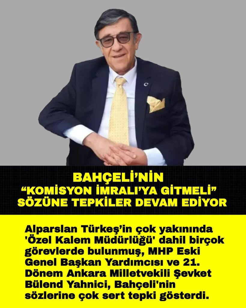 Alparslan Türkeş’in çok yakınında ‘Özel Kalem Müdürlüğü’ dahil birçok görevlerde bulunmuş, MHP Eski Genel Başkan Yardımcısı ve 21. Dönem Ankara Milletvekili Şevket Bülend Yahnici, Bahçeli’nin sözlerine çok sert tepki gösterdi.
