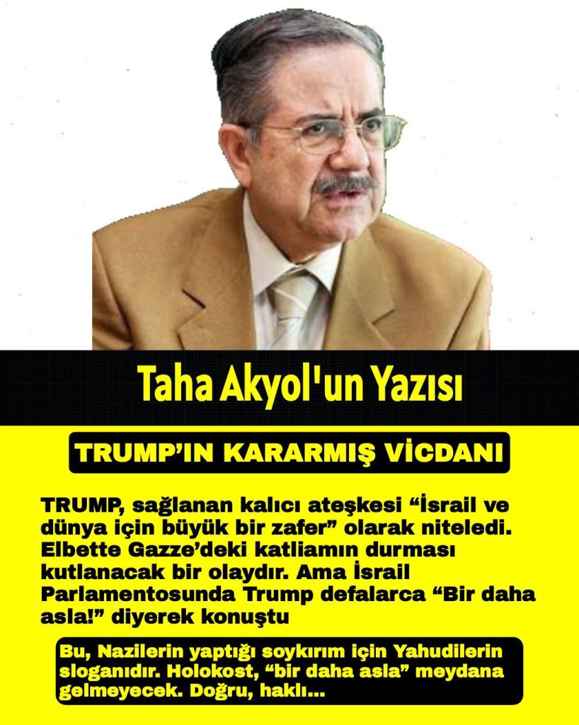 TRUMP, sağlanan kalıcı ateşkesi “İsrail ve dünya için büyük bir zafer” olarak niteledi. Elbette Gazze’deki katliamın durması kutlanacak bir olaydır. Ama İsrail Parlamentosunda Trump defalarca “Bir daha asla!” diyerek konuştu.