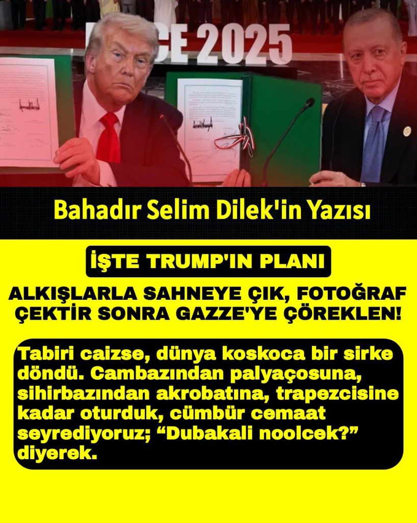 Dünyaya nizam verenlerin dönüşü gibi sunuluyor. Amerikan Yüzyılını canlandırma gayreti, biz diyelim ki içi boş bir vitrin diplomasisi. Trump için ise fırsat bu fırsat; 2026’da yapılacak Senato ara seçimlerine “Ortadoğu’ya barışı ben getirdim” manşetiyle gitmek istiyor.