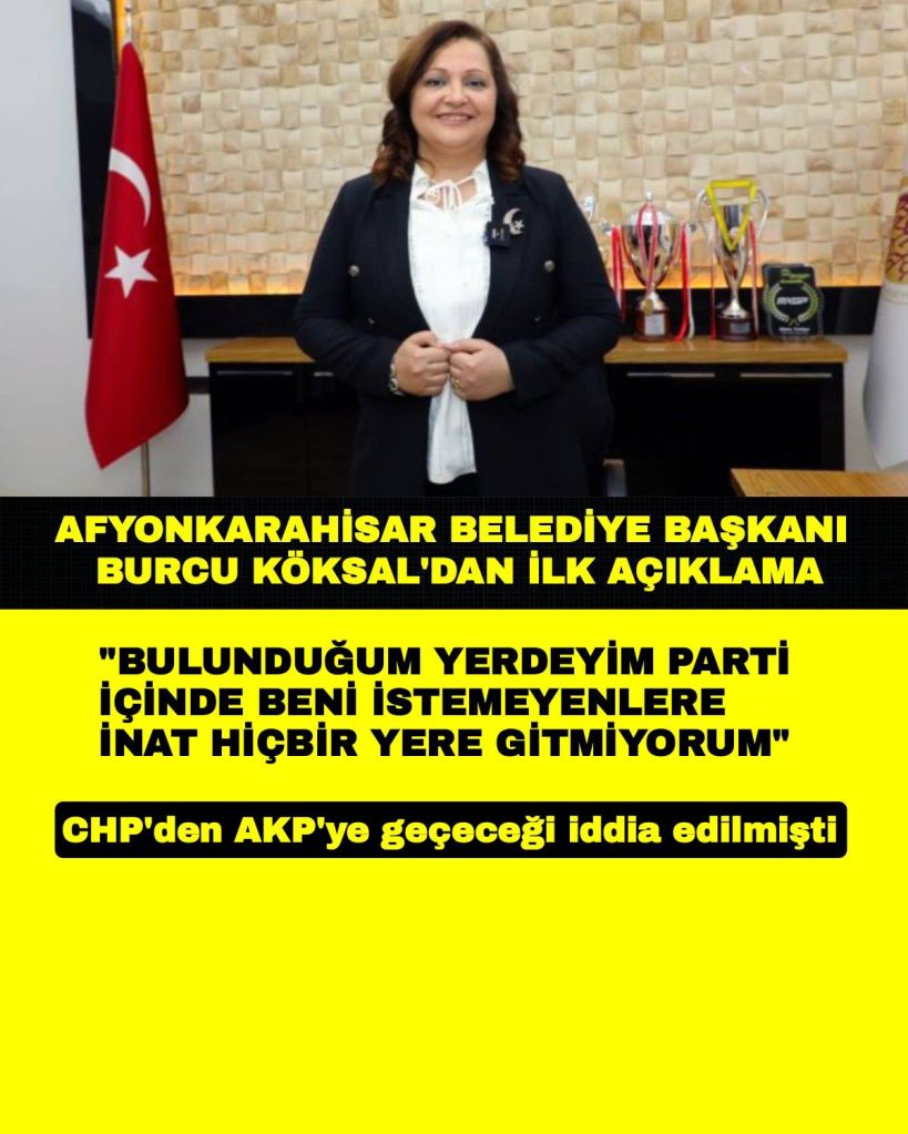 CHP’den AKP’ye geçeceği konuşulan Afyonkarahisar Belediye Başkanı Burcu Köksal’dan ilk açıklama geldi.