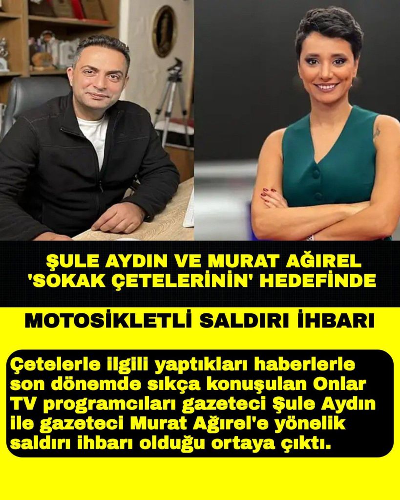 Çetelerle ilgili yaptıkları haberlerle son dönemde sıkça konuşulan Onlar TV programcıları gazeteci Şule Aydın ile gazeteci Murat Ağırel’e yönelik saldırı ihbarı olduğu ortaya çıktı.
