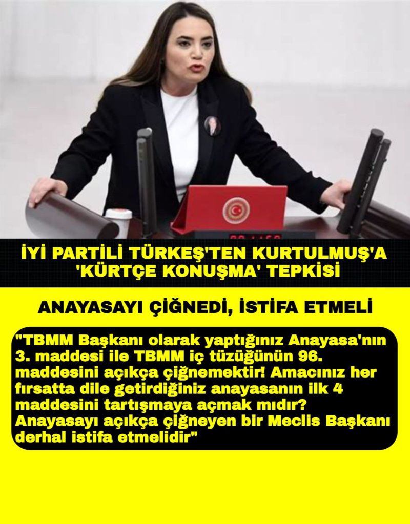 İYİ Parti Adana Milletvekili Ayyüce Türkeş Taş, TBMM Başkanı Numan Kurtulmuş’un Dicle Üniversitesi 2025-2026 Akademik Yıl Açılış Programı’nda Kürtçe konuşma yapmasına tepki gösterdi