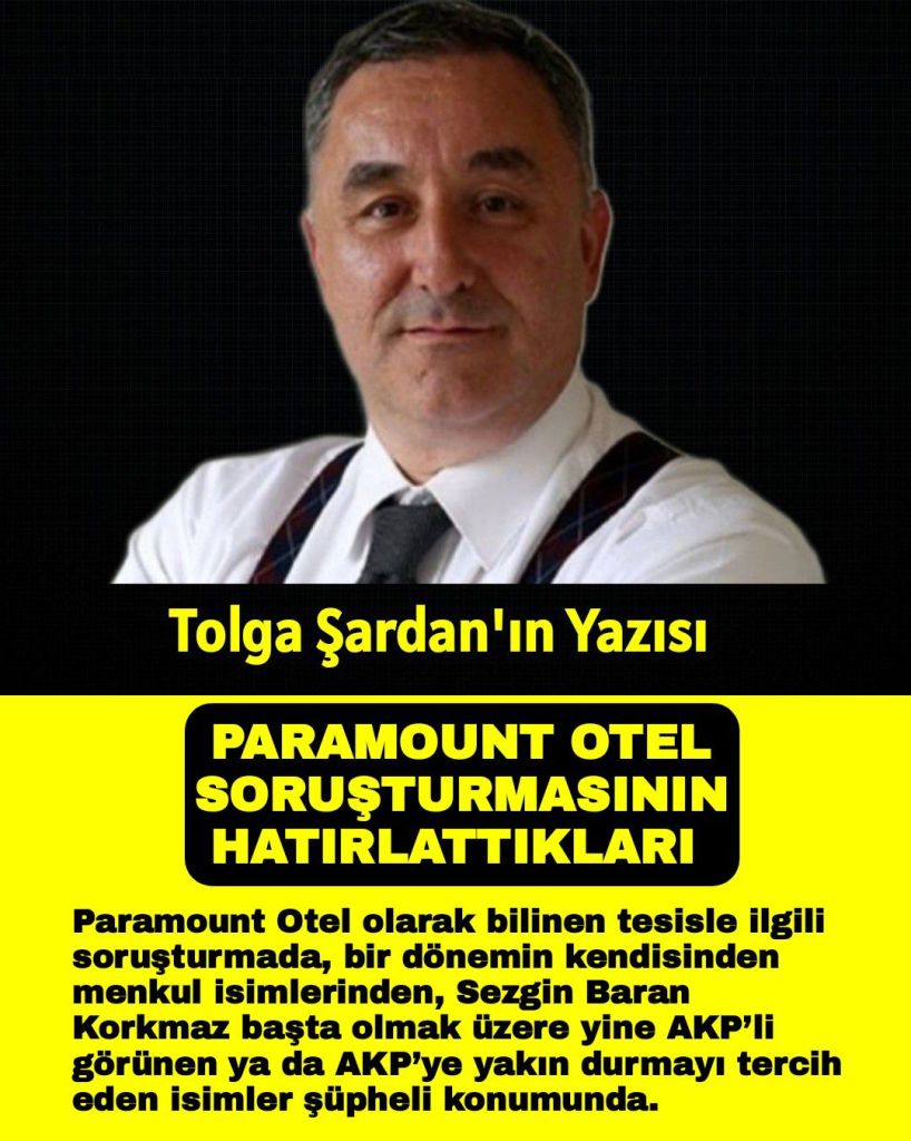 Paramount Otel olarak bilinen tesisle ilgili soruşturmada, bir dönemin kendisinden menkul isimlerinden, Sezgin Baran Korkmaz başta olmak üzere yine AKP’li görünen ya da AKP’ye yakın durmayı tercih eden isimler şüpheli konumunda.