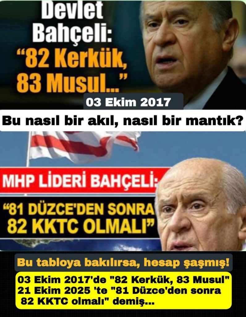 Bir de çok kafama takılan bir soru var…Bahçeli’nin aklına bu lafı etmek Ersin bey kaybedip, Tufan bey kazanınca mı geldi? Kazanan Ersin bey olsaydı da, aynı lafı eder miydi?..40 senedir neredeyse siyasetin içinde. 1997’den beri partinin önderi. Arada Başbakan Yardımcısı oldu. Epeydir cumhur sebebiyle yandan ortak. Ersin bey de orada duruyordu. Niye bu lafi etmek için KKTC seçim sonunu bekledi ?..
