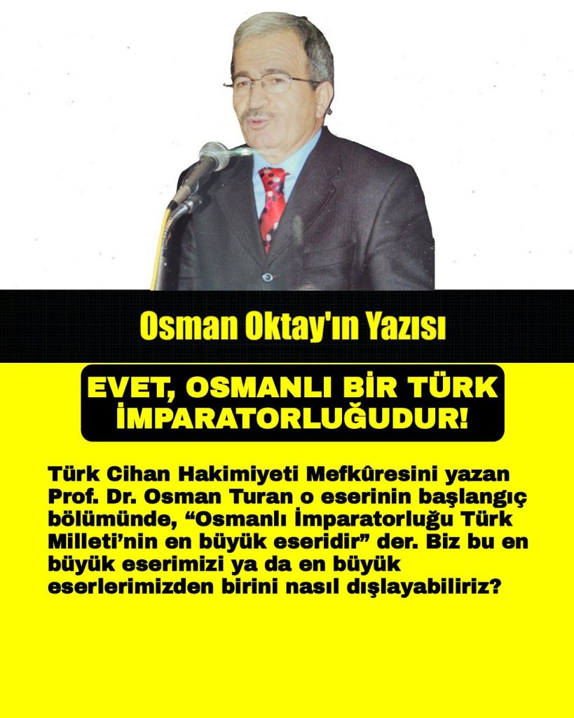 Türk Cihan Hakimiyeti Mefkûresini yazan Prof. Dr. Osman Turan o eserinin başlangıç bölümünde, “Osmanlı İmparatorluğu Türk Milleti’nin en büyük eseridir” der. Biz bu en büyük eserimizi ya da en büyük eserlerimizden birini nasıl dışlayabiliriz? Osmanlı İmparatorluğu’nu aradan çıkarırsak Türkiye Cumhuriyeti büyük bir boşluk içinde kalmaz mı?