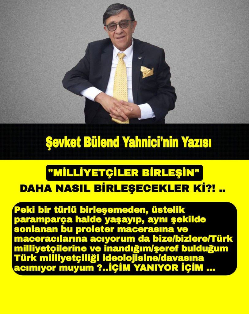 İşin şakası bir yana milliyetçilerin birleşmesi, “dünya zahmetkeşlerinin” birleşmesinden zor görünüyor. Bu ütopyadan vazgeçip gerçekçi çözümler üretmek ve günlük hayata ve siyaset hayatının gerçeklerine yönelip bu istikamette çare aramak daha akılcı bir yol. Bu kadar paramparça olmuş partiyi bir araya getirecek ne kişi, ne kadro yoktur. Bu gerçeği kabul bile ciddi bir başlangıç olur. Maksadım kimseyi incitmek değildir. Ne birleşmeyip, ben varsam dava var, en hakiki marka benim diyerek daha da bölünmeye giden arkadaşlarımızı; ne de bu arkadaşlara durmaksızın birleşme tavsiye ederek gelecekten ümit bekleyen samimi ülkücüleri incitmeyi hiçbir şekilde düşünmem, düşünemem. Böyle bir halden Allah’a sığınırım. Ancak halin ve gerçeklerin böyle olduğunu yazmayı / söylemeyi de camiaya bir gönül borcu olarak gördüğüm için soyledim/ yazdım. Ellerimi açıyor ve Yüceler Yücesine yalvarıyorum: TANRIM TÜRKÜ KORU, TÜRK MİLLİYETÇİLERİNE KUT VER !..