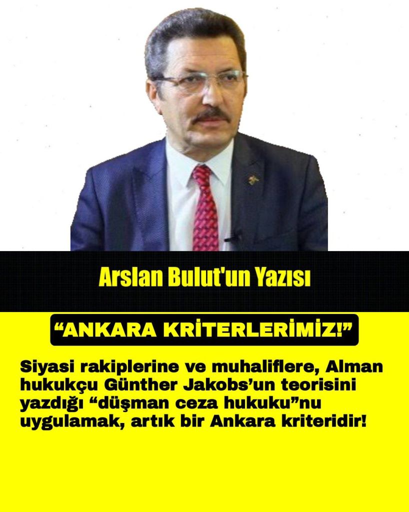Siyasi rakiplerine ve muhaliflere, Alman hukukçu Günther Jakobs’un teorisini yazdığı “düşman ceza hukuku”nu uygulamak, artık bir Ankara kriteridir!