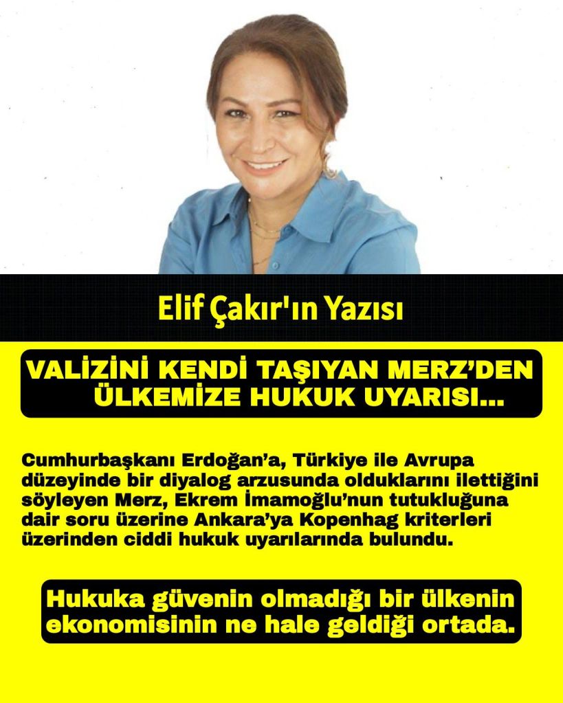 Dünyanın dördüncü büyük ülkesinin, ki kişi başına milli gelir 59 bin 930 dolara sahip, hukuk, demokrasi, insan hakları endekslerinde ilk beşlerde yer alan Almanya’nın kendi valizini taşıyan başbakanı Merz geldi ve ülkemize hukuk uyarısı yaptı ve gitti.