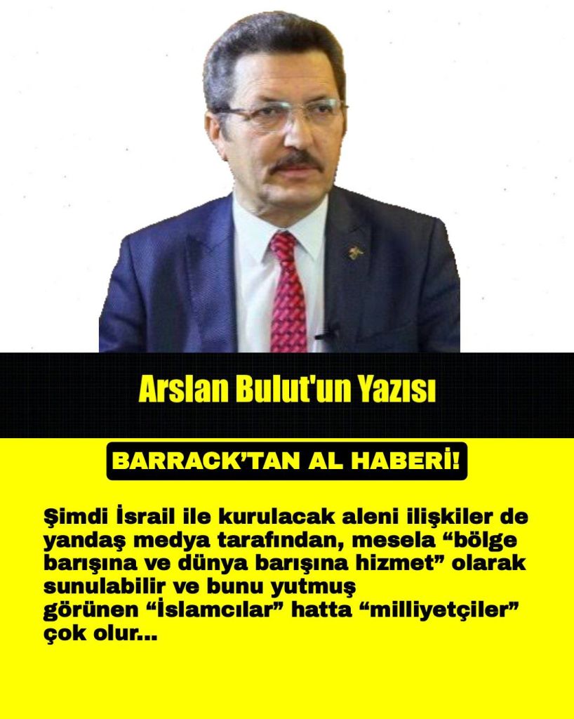 Şimdi İsrail ile kurulacak aleni ilişkiler de yandaş medya tarafından, mesela “bölge barışına ve dünya barışına hizmet” olarak sunulabilir ve bunu yutmuş görünen “İslamcılar” hatta “milliyetçiler” çok olur…