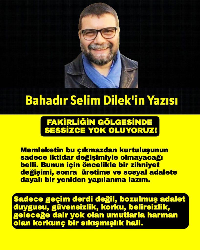 Memleketin bu çıkmazdan kurtuluşunun sadece iktidar değişimiyle olmayacağı belli. Bunun için öncelikle bir zihniyet değişimi, sonra üretime ve sosyal adalete dayalı bir yeniden yapılanma lazım.