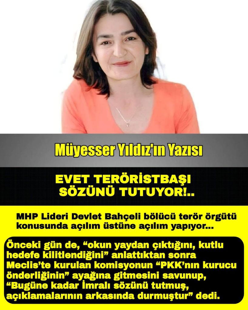 Bahçeli’nin övdüğü üzere “İmralı’nın sözünü tuttuğu” ortada… 27 Şubat’ta ne söylediyse, daha da açarak yol alıyor; “demokratik siyaset ve hukuki boyutun tanınmasını” yani “Kürt kimliğinin” tanınmasını şart koşuyor!..