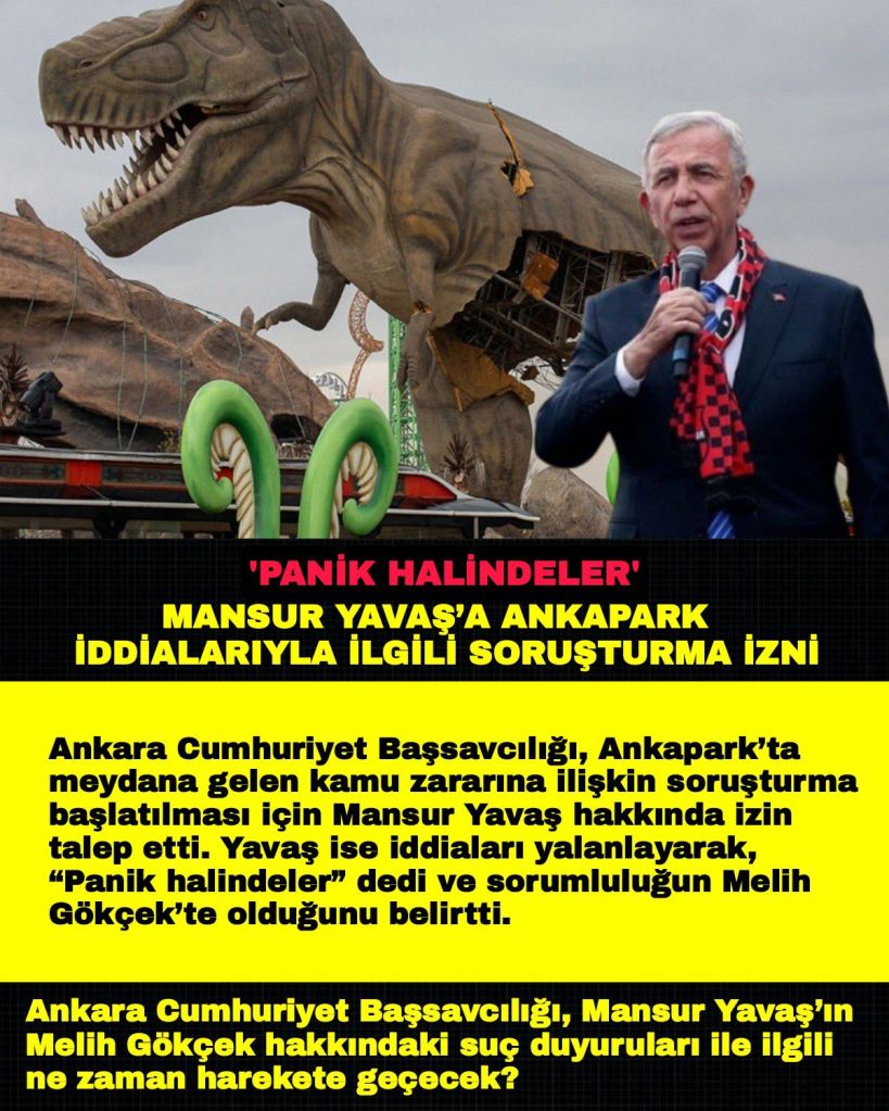 Ankara Cumhuriyet Başsavcılığı, Ankapark’ta meydana gelen kamu zararına ilişkin soruşturma başlatılması için Mansur Yavaş hakkında izin talep etti. Yavaş ise iddiaları yalanlayarak, “Panik halindeler” dedi ve sorumluluğun Melih Gökçek’te olduğunu belirtti.