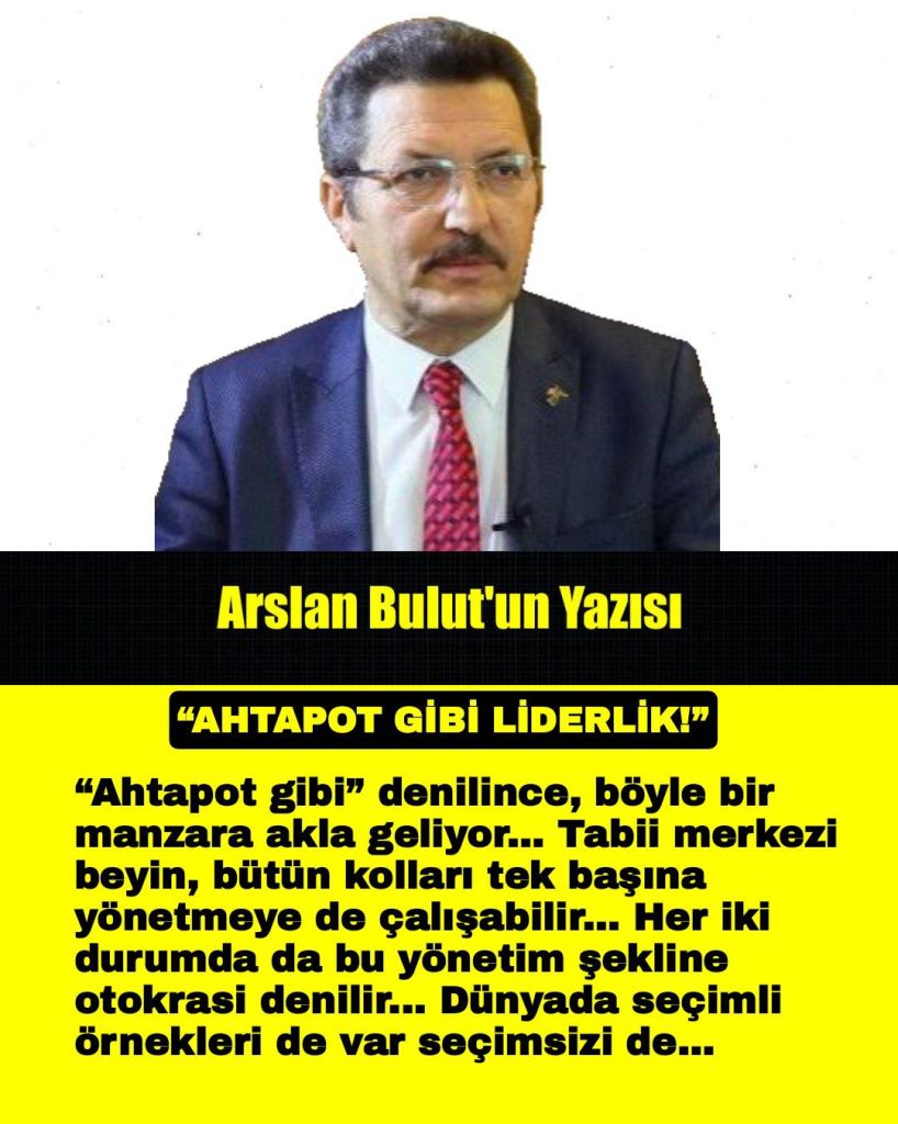 “Ahtapot gibi” denilince, böyle bir manzara akla geliyor… Tabii merkezi beyin, bütün kolları tek başına yönetmeye de çalışabilir… Her iki durumda da bu yönetim şekline otokrasi denilir… Dünyada seçimli örnekleri de var seçimsizi de…