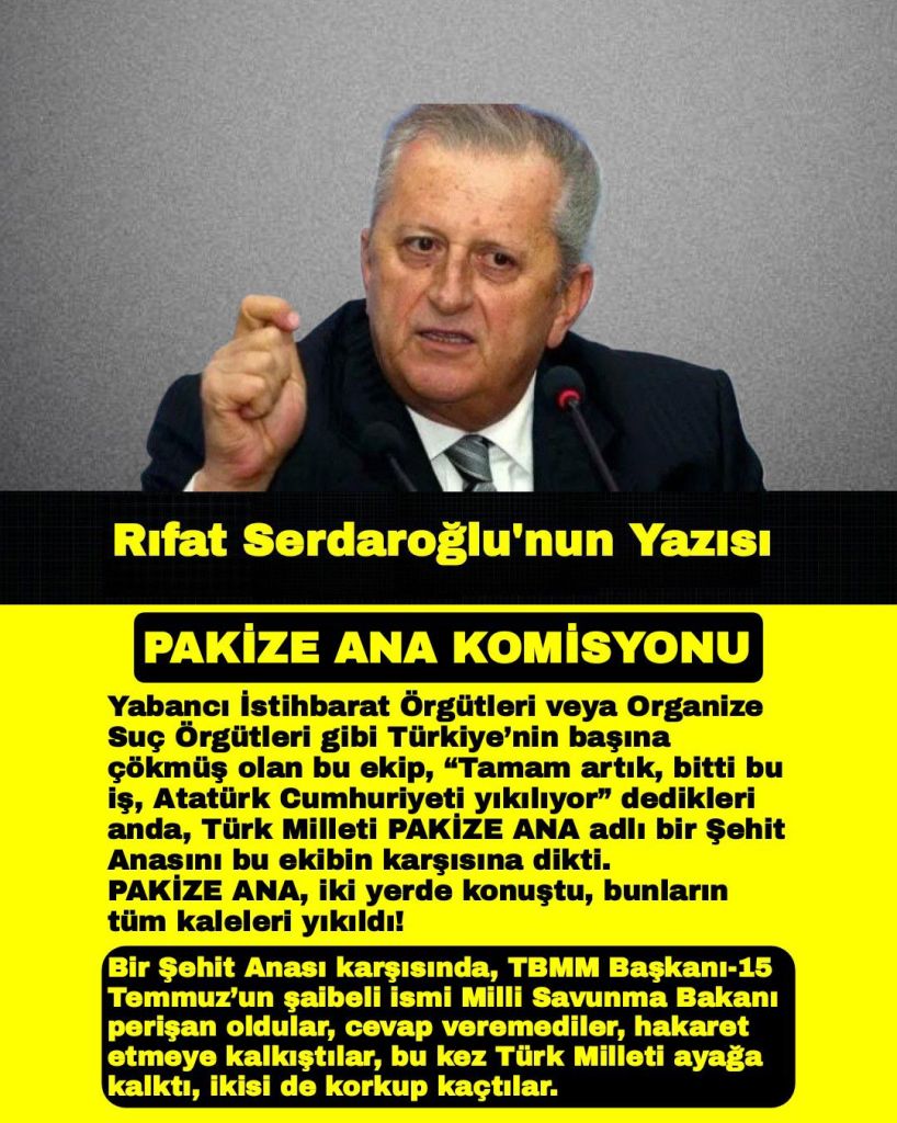 Yabancı İstihbarat Örgütleri veya Organize Suç Örgütleri gibi Türkiye’nin başına çökmüş olan bu ekip, “Tamam artık, bitti bu iş, Atatürk Cumhuriyeti yıkılıyor” dedikleri anda, Türk Milleti PAKİZE ANA adlı bir Şehit Anasını bu ekibin karşısına dikti.