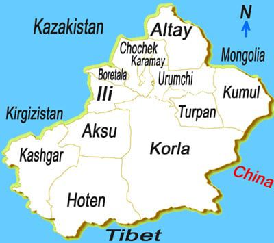 Yazımız içinde verdiğimiz Doğu Türkistan haritaları incelenince görülecek olan Türkçe