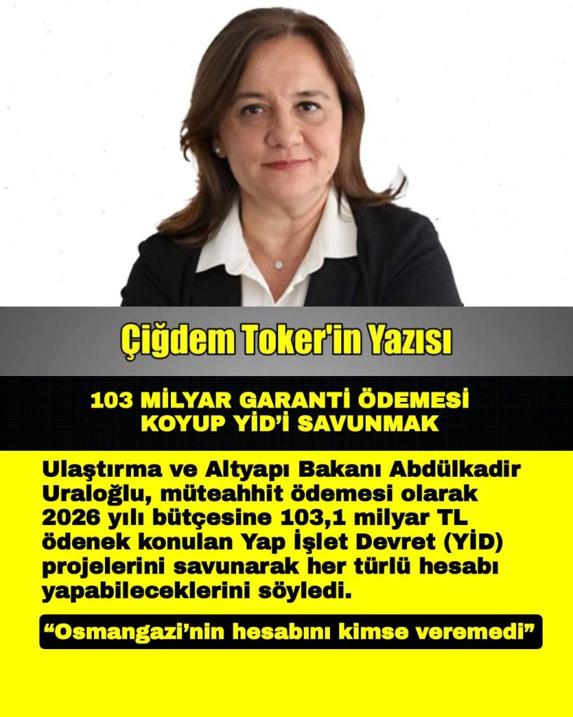 Ulaştırma ve Altyapı Bakanı Abdülkadir Uraloğlu, müteahhit ödemesi olarak 2026 yılı bütçesine 103,1 milyar TL ödenek konulan Yap İşlet Devret (YİD) projelerini savunarak her türlü hesabı yapabileceklerini söyledi.