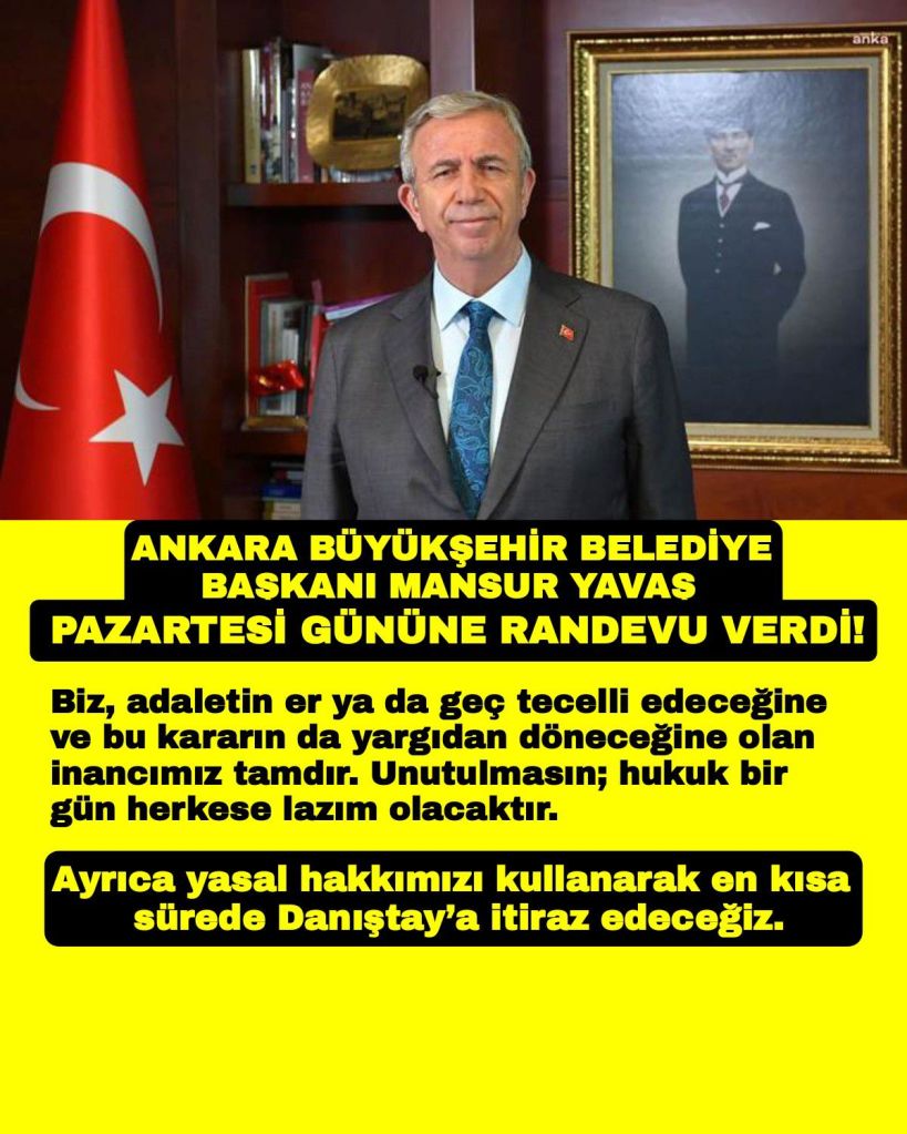 Ankara Büyükşehir Belediye Başkanı Mansur Yavaş, sosyal medya X hesabından bu konuyla ilgili aşağıdaki açıklamayı yaptı.