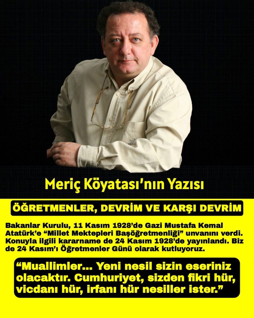 Öğretmenler günü nedeniyle, bende emeği olan tüm öğretmenlerimi ve İstiklal Savaşı Gazisi Büyükbabam başöğretmen rahmetli Sait Köyatası’nı, rahmetli babam öğretmen Rüçhan Köyatası’nı, rahmetli annem öğretmen Vedia Köyatası’nı, rahmetli halam öğretmen Rayegan Köyatası’nı minnetle anıyor, diğer halam öğretmen Ayten Köyatası Bayrak’a esenlik diliyor, şükranlarımı sunuyorum.