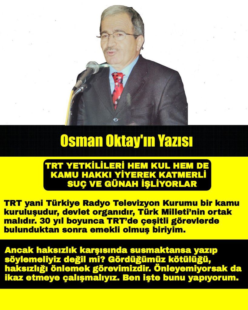 TRT yani Türkiye Radyo Televizyon Kurumu bir kamu kuruluşudur, devlet organıdır, Türk Milleti’nin ortak malıdır. 30 yıl boyunca TRT’de çeşitli görevlerde bulunduktan sonra emekli olmuş biriyim.