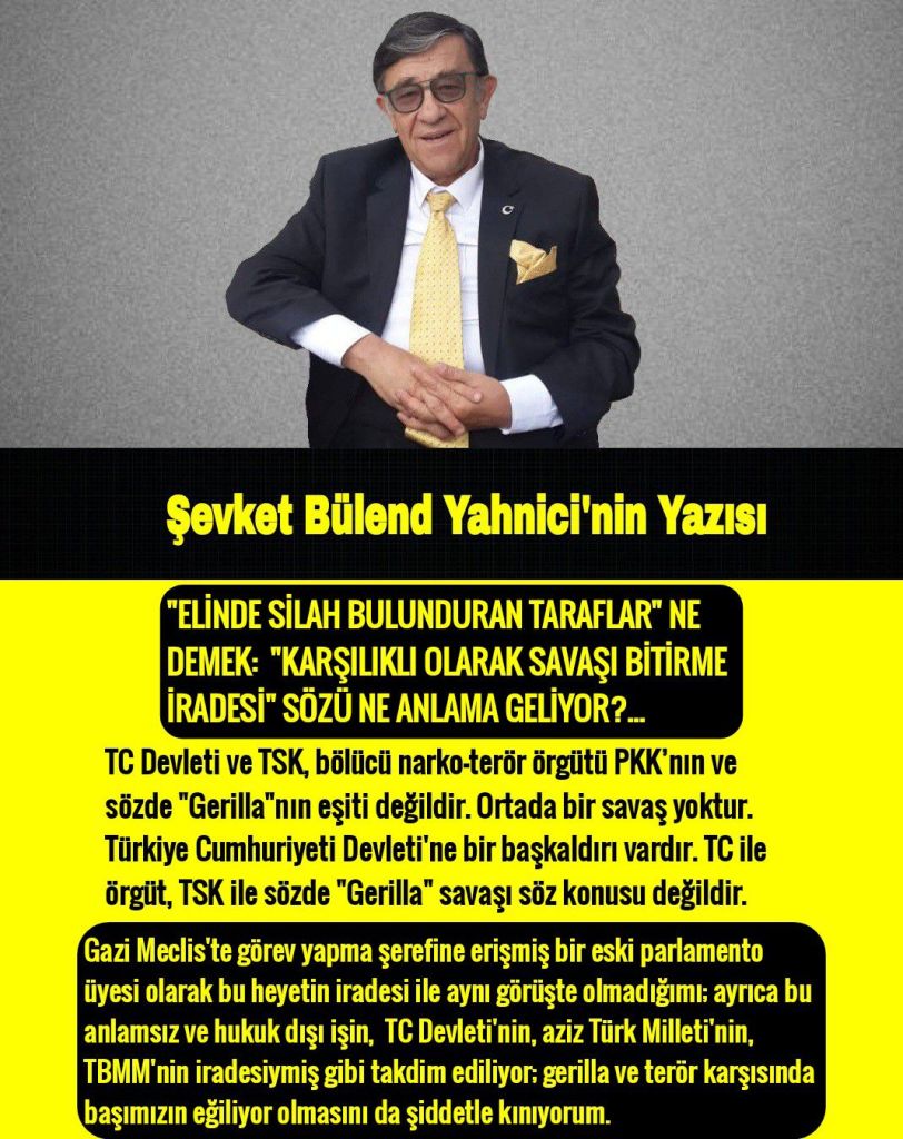 Hepimiz iyi-kötü bir kısım okullara gittik. Kimimizin diploması var, kimimizin yok. Kimimiz yüksek okul okudu, fakültelere gitti, üniversitelerden mezun oldu. Kimimiz de ilk, orta, lise tahsillerimiz sırasında en azından yurttaşlık bilgisi dersleri gördük. Çoğumuzun okul yıllarında da çoğunlukla yüzbaşı-binbaşı seviyesinde muvazzaf subayların girdiği derslerde “milli savunma ve askerlik dersleri” okuduk. Orta okul ve liselerde bu dersleri 1926-27 döneminden beri okutmuşuz. İşte konuya buradan girerek bazı sorular soralım…”Elinde silah bulunduran taraflar…” diye bir cümle kurulacak olursa – bütün dunyada- akla ne gelir ?..Hemen SAVAŞ gelmez mi ?..Bu cümle savaşan, savaşmakta olan tarafları ( iki veya daha fazla sayıda ülkeyi ve o ülkelerin ordularını ) ifade etmek için kurulmuştur. Savaşan iki ülke ve orduları olabilir. Bir ülke birden çok ülke ve ordularıyla savaşıyor olabilir. Ya da, her iki tarafta da birden fazla ülke ve orduları olabilir. Eğer ki, “elinde silah bulunduran” sözüyle savaşı kasdetmekte iseniz, bunun ülkeler ve ordular arasında olduğunu biliyorsunuz demektir. Bu en basit ilkokul, ortaokul, lise bilgisidir. Eğer “elinde silah bulunduran taraflar” cümlesini kurduysaniz ve kasdetmekte olduğunuz taraflardan biri bir ülke, bir devletse, o işte bir iş var demektir. Kastedilen ülke ve devlete karşı “silah bulunduran taraf” beyanı, bahis konusu ülke /devletin bir isyanla, başkaldırıyla, kalkışmayla, terörle karşı karşıya bulunduğunun göstergesidir. Burada “silah bulunduran taraflar” tarifi bir yanda bir ülke /devleti kastediyorsa, karşı tarafın adı bir ülke /devlet değil, sözde “Gerilla”dır. Sözde” Gerilla”yı ordu ile, teröristi devletle eşitleyemezsiniz. Bunu Ülkemiz özelinde yapmaya kalkarsanız akla, mantığa, hukuka, milli savunma ve askerlik sistemine aykırı bir iş yapıyorsunuz demektir. Eğer ki, konunun “silah bulunduran taraflar” lafının sözde “gerilla”, ya da terör tarafındaysanız ve Sevr Türkiyesi için silaha sarılan tarafla birlikteyseniz (Apo, Demirtaş, Buldan, Karayılan, Bakırhan, G.Koçyiğit, Selçuk Mızraklı, Sakık gibi…) kendi açınızdan haklısınız demektir. Çünki, siz Lozan yerine Sevr’i istiyorsunuz, Türkiye Cumhuriyeti Devleti ile narko-terör örgütünü eşit kılmaya çalışıyorsunuz; Apo’yu TC Cumhurbaşkanı’nın mevkidaşı haline itelemeye çalışıyorsunuz; ” silah bulunduran taraflar” lafıyla Türk Devletiyle terör örgütünü, TSK ile gerillayi dünyaya aynı seviyede takdim ediyorsunuz…Böyle yapmakta da haklısınız. Siz doğru olanı yapıyorsunuz…”…Karşılıklı olarak savaşı bitirme…” diyorsunuz ya…Onda da haklısınız… Elimiz kırılsa da biz ( TC DEVLETİ, TSK) elimize silah almasaydık…Ne siz isyan ederdiniz, ne dağa çıkardınız, ne ” Anayasal düzeni yıkmak için silahlı terör örgütü kurmak” zorunda kalırdınız; ne başkaldırı, ne kalkışma olmazdı…Mete Han zaten bu orduyu boşuna kurmuş…Ne vardı ki, Mustafa Kemal Şişli’deki apartmandan kalkıp Bandırma Vapuruna binmesiydi… Bunların ” karşılıklı olarak silah bulunduran taraflar ” ve “…savaşı bitirme iradesi…” sözleriyle kendilerini bizimle ( TC ile,TSK ile, TBMM ile, Cumhurbaşkanımız ile) eşit görme ve eşitleme gayretlerini anlıyorum da bizim kendimizi bunlarla ( narko-terör örgütüyle, sözde “gerilla” ile, Apo’yla ) aynı seviyeye indirme telaş ve gayretimizi hiç anlamıyorum…