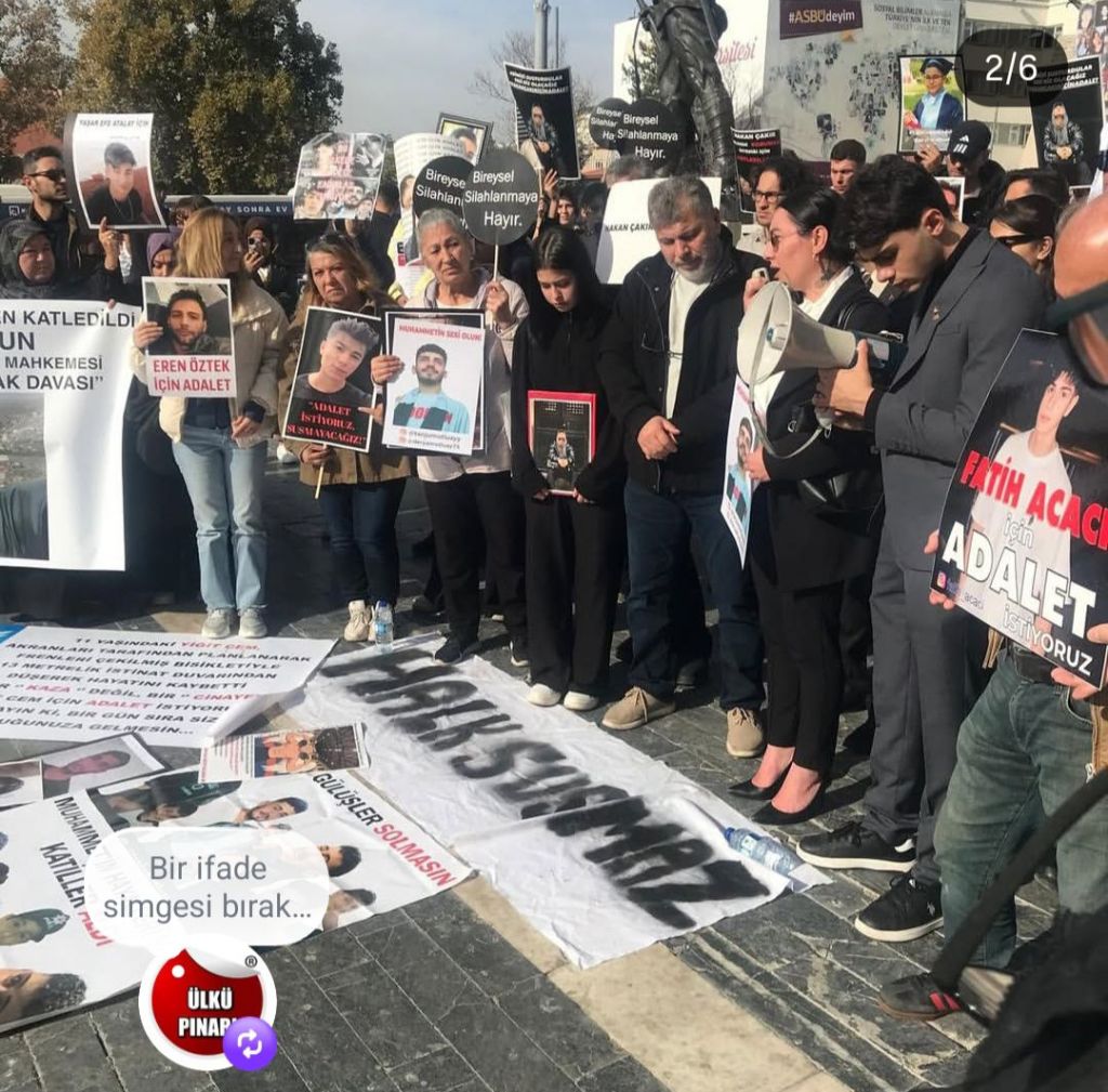 “Uluslararası İnsan Hakları ve Çocuk Hakları Derneği olarak bugün Ankara Ulus Meydanı’nda, En doğal hak olan yaşam hakkı elinden alınmış vahşice katledilen Hakan Çakır, Ahmet Mingüzi, Rojin kabaiş, Şule Çet, Muhammed Halıcı, Yaşar Efe ve vahşice katledilen tüm kardeşlerimiz adına yaptığımız basın açıklamasında yanımızda olan tüm sivil toplum kuruluşlarına, siyasi parti temsilcilerine ve duyarlılık gösteren tüm vatandaşlarımıza teşekkürü bir borç bilirim.